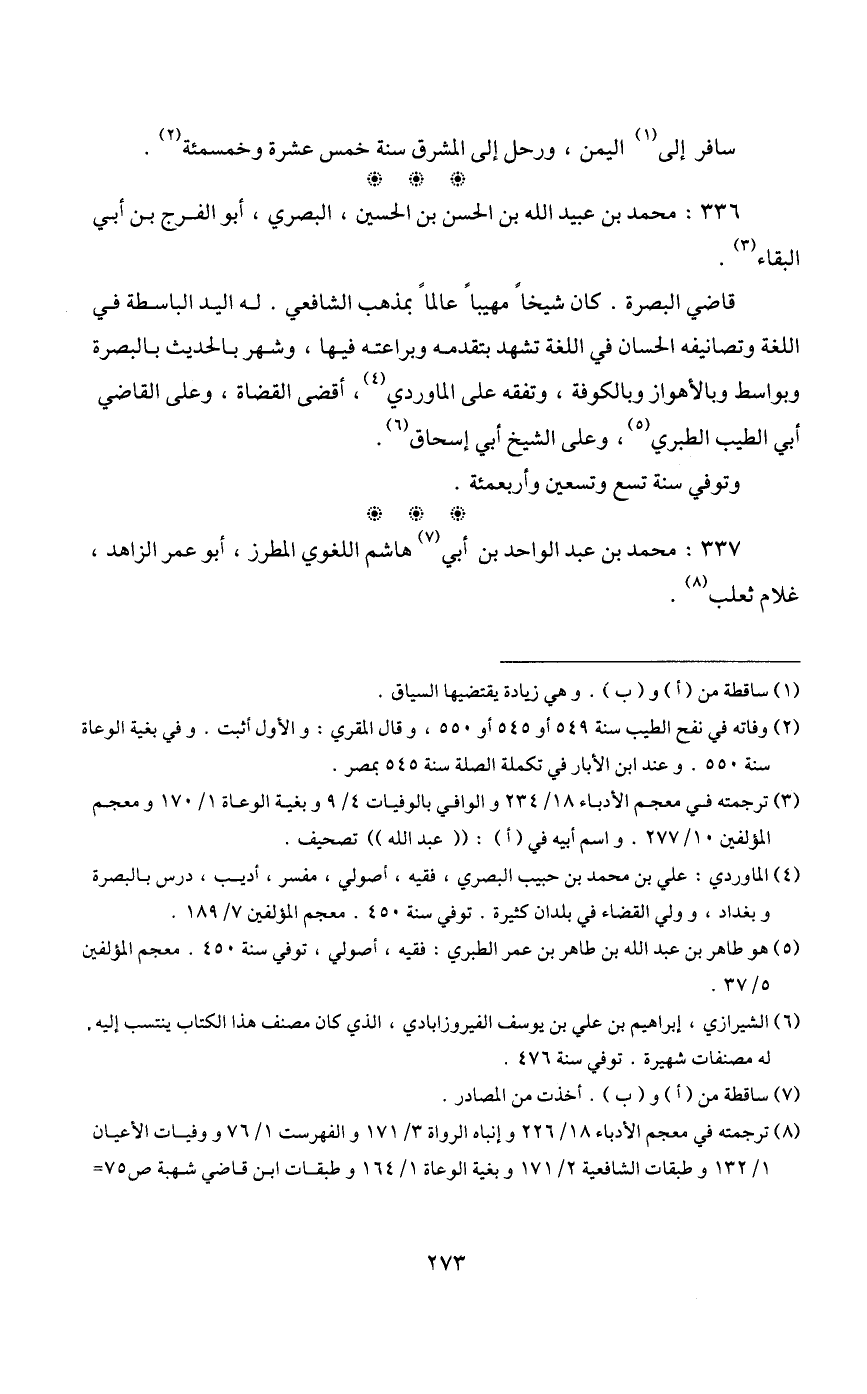8 ترجمته في معجم الأدباء 18/ 226 وإنباه الرواة 3/ 171 والفهرست 1/ 76 ووفيات الأعيان 1/ 132 وطبقات الشافعية 2/ 171 وبغية الوعاة 1/ 164 وطبقات ابن قاضي شهبة ص75 ونزهة الألباء ص276 والفلاكة والمفلوكون ص126 والأعلام 7/ 132 ومعجم المؤلفين 10/ 266.
