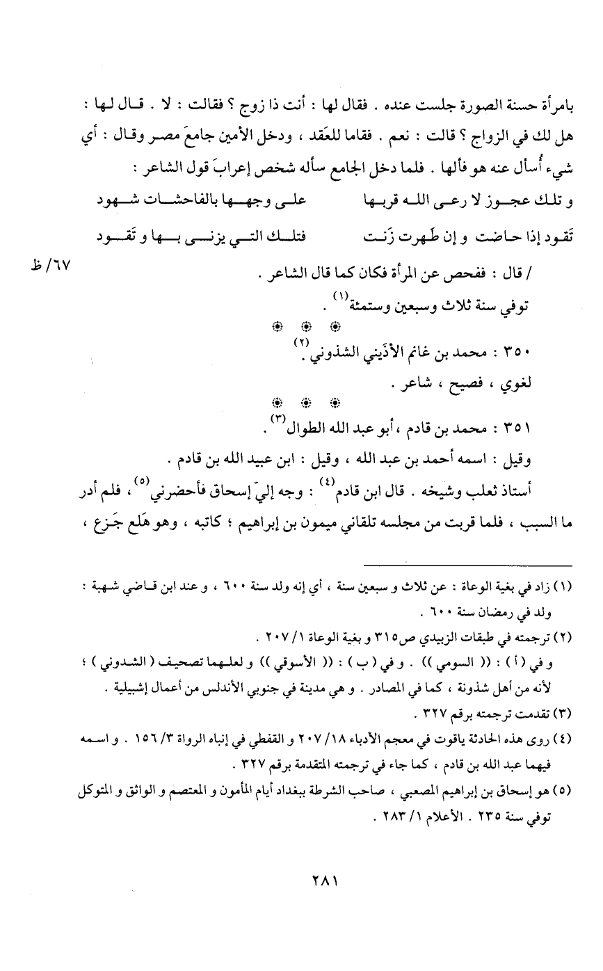 4 روى هذه الحادثة ياقوت في معجم الأدباء 18/ 207 والقفطي في إنباه الرواة 3/ 156. واسمه فيهما عبد الله بن قادم، كما جاء في ترجمته المتقدمة برقم 327.
