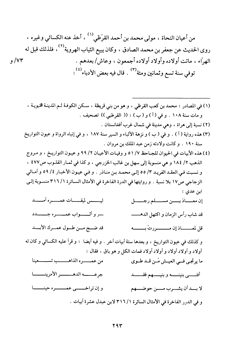 3 هذه رواية "أ". وفي "ب" ونزهة الألباء والسير سنة 187، وفي إنباه الرواة وعيون التواريخ سنة 190. وكانت ولادته زمن عبد الملك بن مروان.