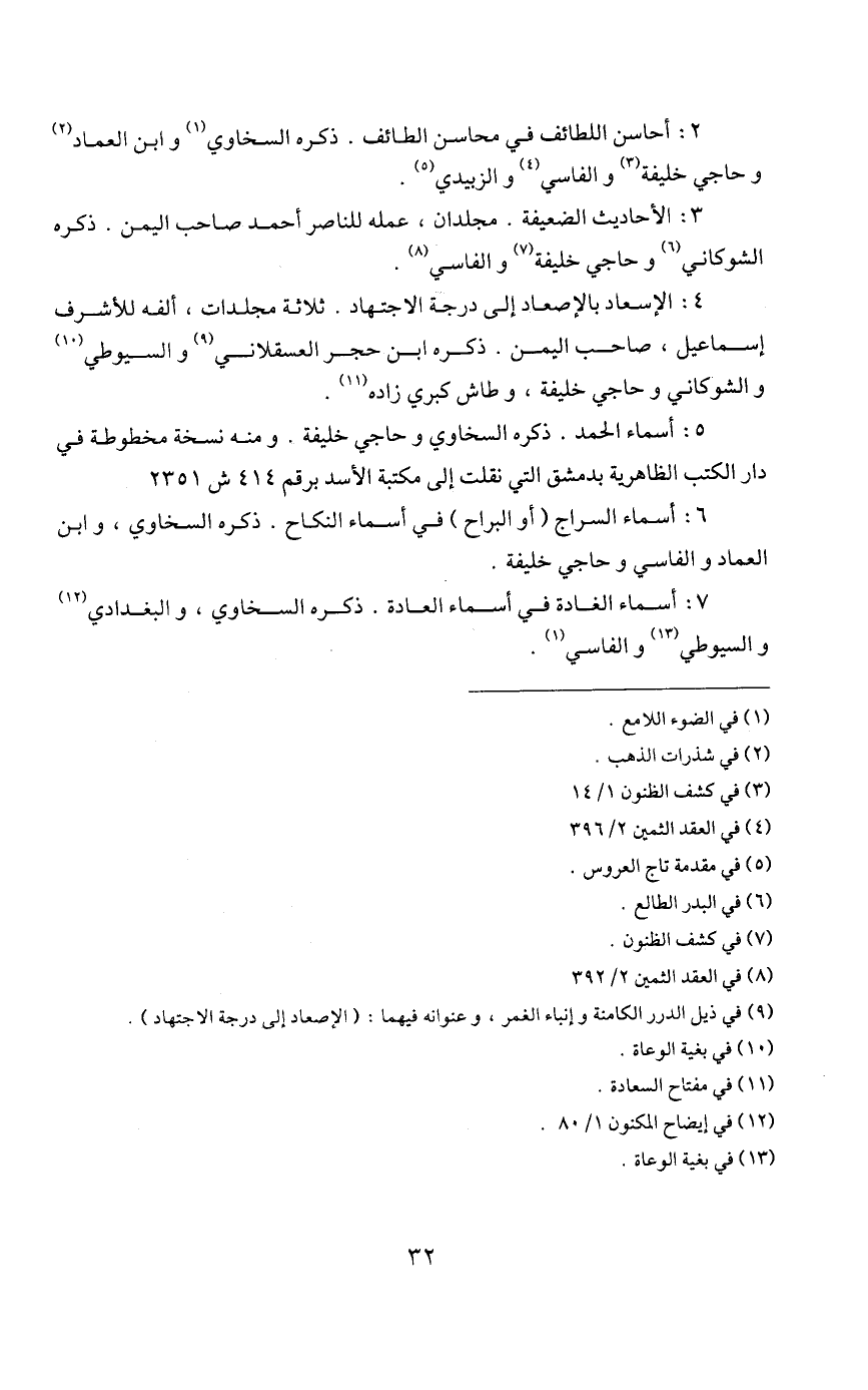 4- الإسعاد بالإصعاد إلى درجة الاجتهاد. ثلاثة مجلدات، ألفه للأشراف إسماعيل، صاحب اليمن. ذكره ابن حجر العسقلاني9 والسيوطي10 والشوكاني وحاجي خليفة، وطاش كبرى زاده11.
