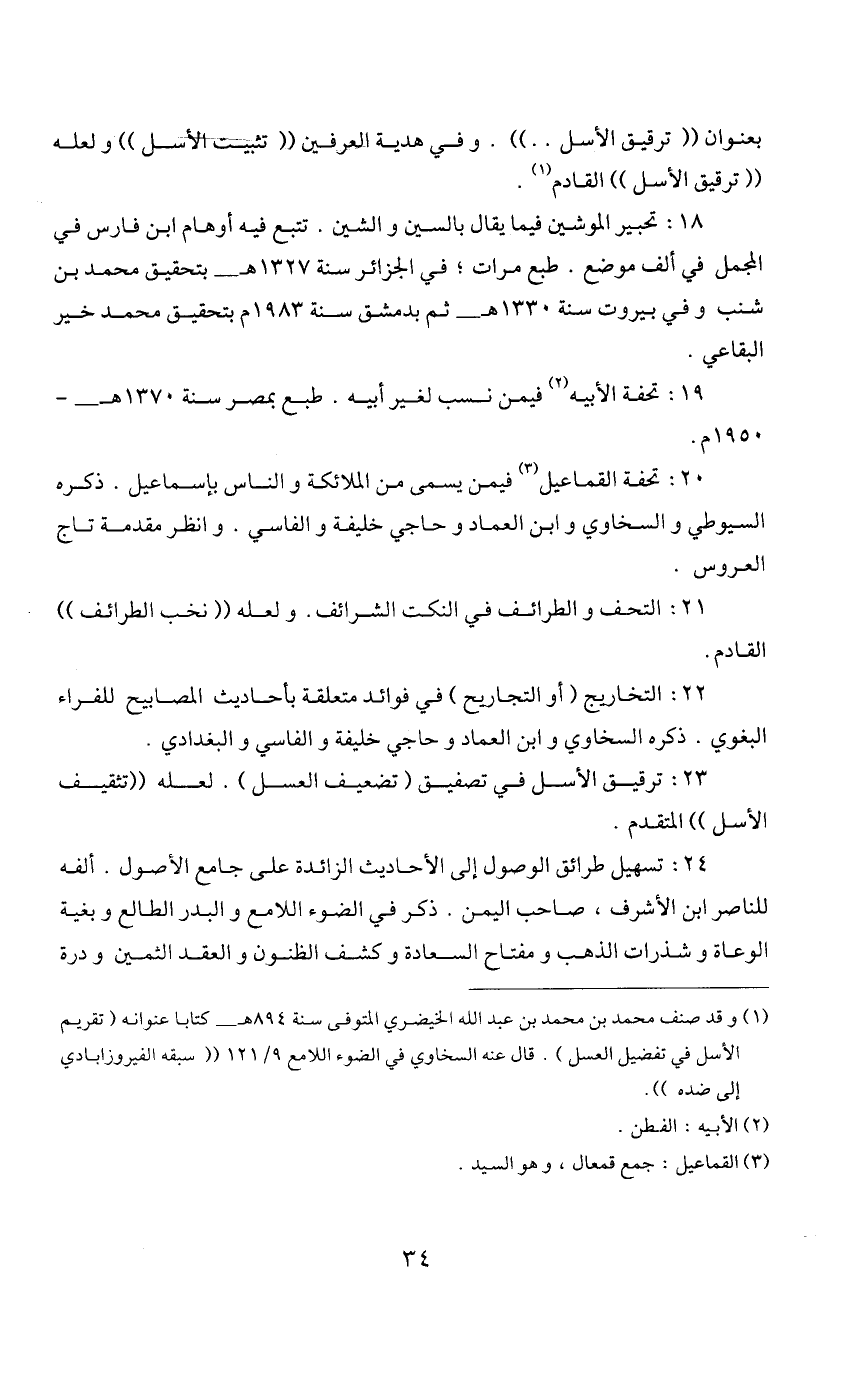 20- تحفة القماعيل3 فيمن يسمى من الملائكة والناس بإسماعيل. ذكره السيوطي والسخاوي وابن العماد وحاجي خليفة والفاسي. وانظر مقدمة تاج العروس.