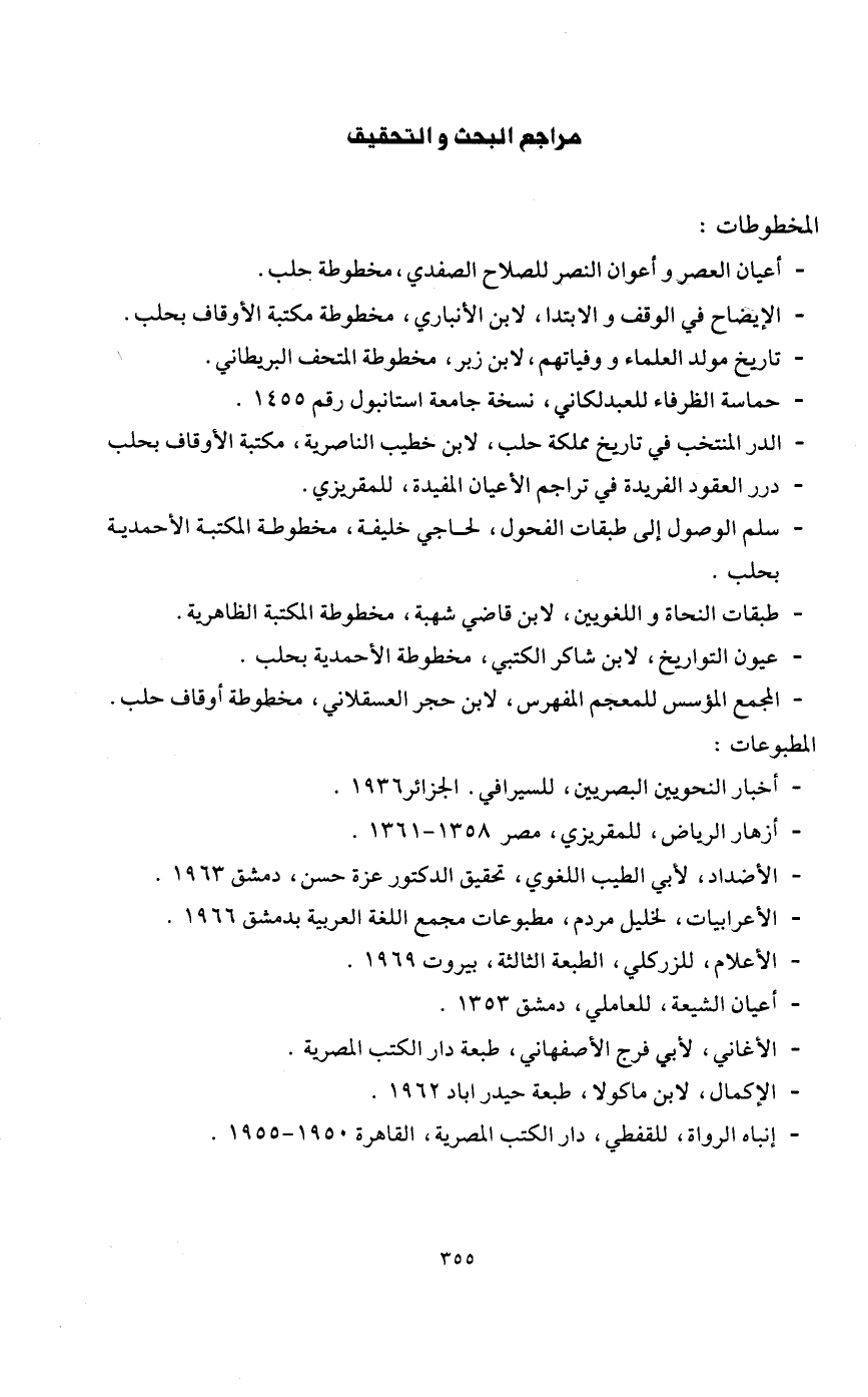 - الدر المنتخب في تاريخ مملكة حلب، لابن خطيب الناصرية، مكتبة الأوقاف بحلب