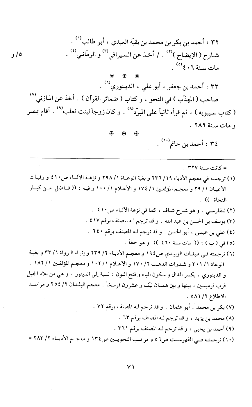6 ترجمته في طبقات الزبيدي ص194 ومعجم الأدباء 2/ 239 وإنباه الرواة 1/ 33 وبغية الوعاة 1/ 301 وشذرات الذهب 2/ 170 والأعلام 1/ 102 ومعجم المؤلفين 1/ 182.