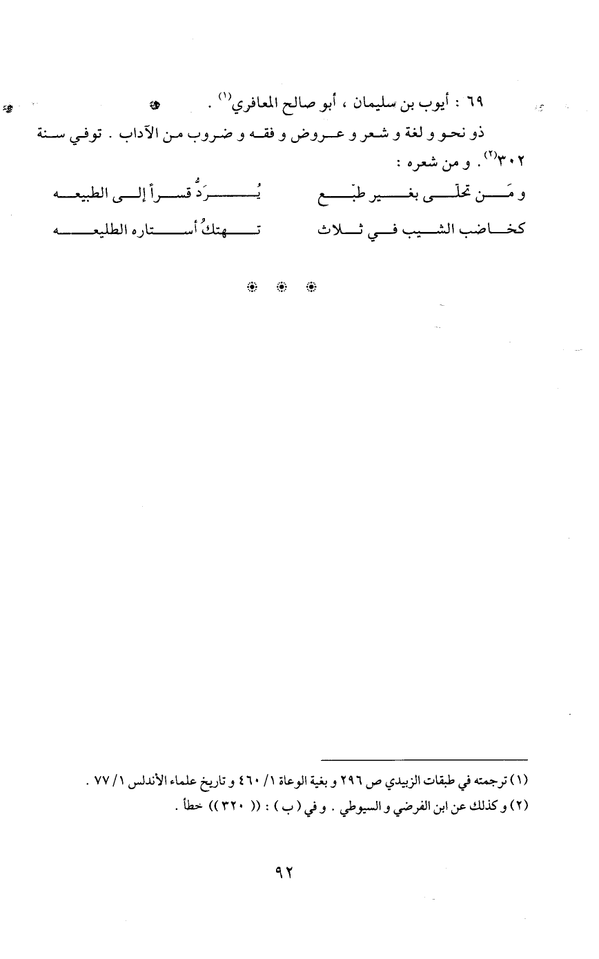 ذو نحو ولغة وشعر وعروض وفقه وضروب من الآداب. توفي سنة 302 2. ومن شعره: