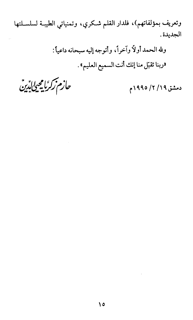 وتعريف بمؤلفاتهم)، فلدار القلم شكري، وتمنياتي الطيبة لسلسلتها