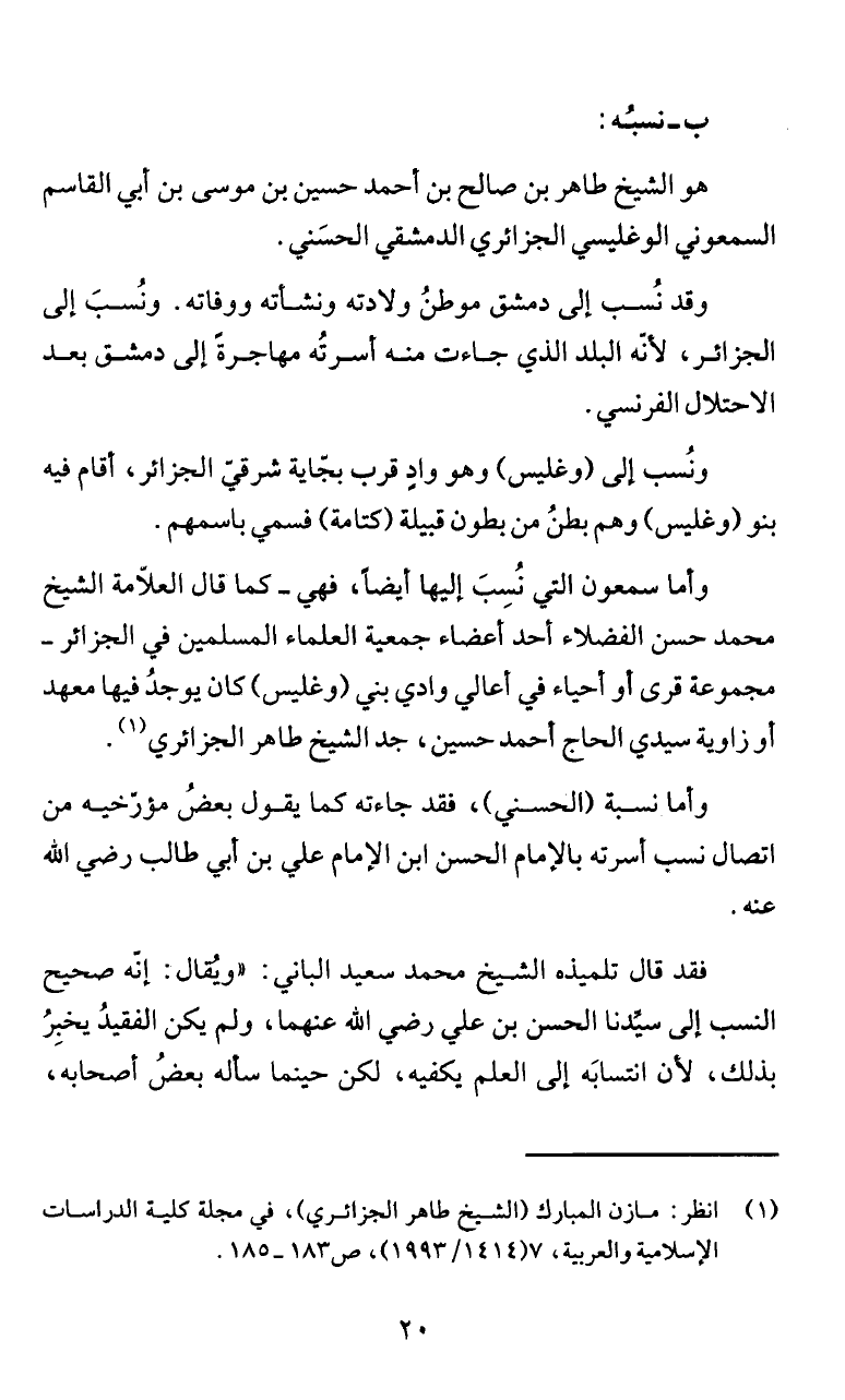 انطر: مازن المبارك (الشيخ طاهر الجزائري)، في مجلة كلية الدراساب