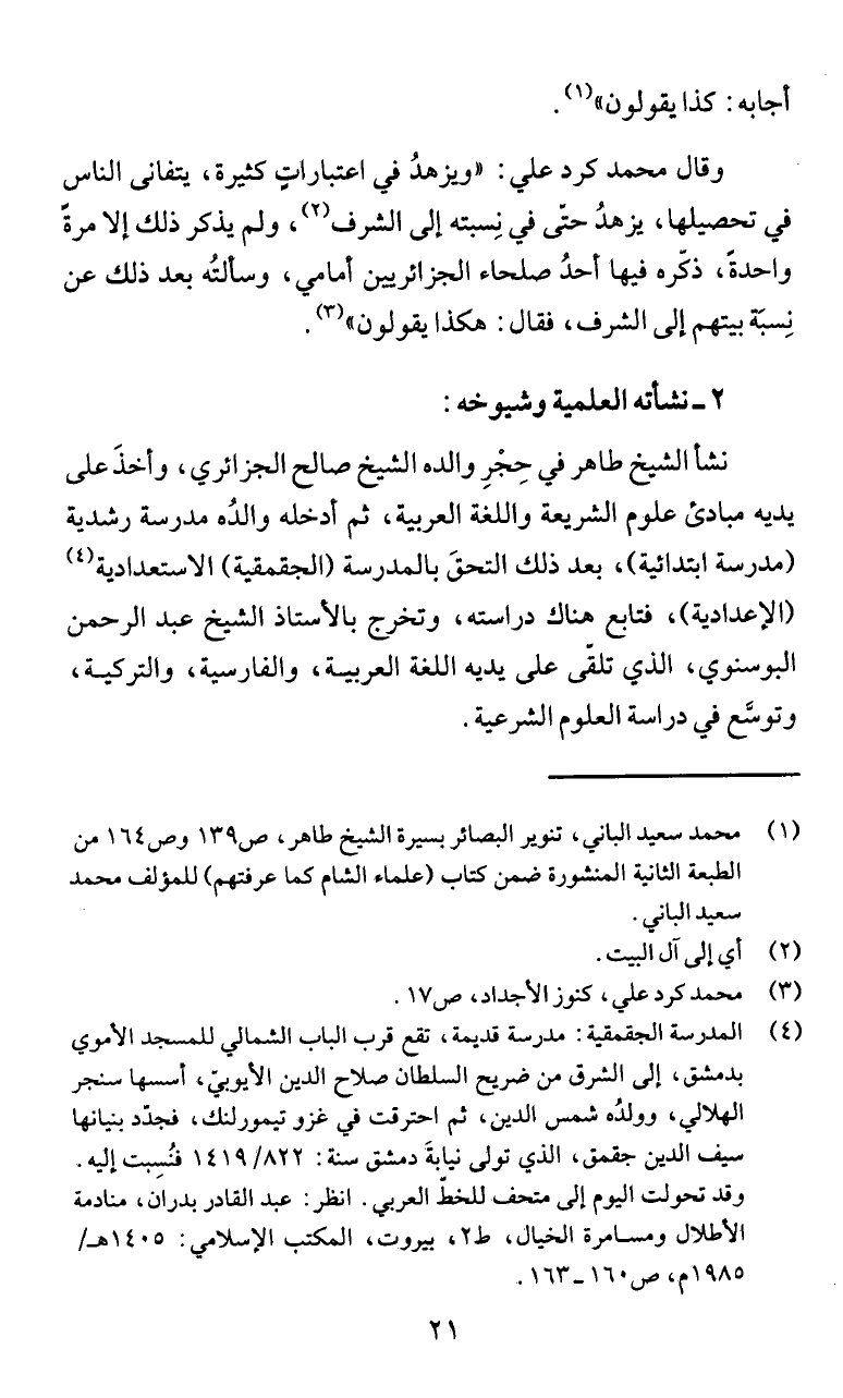محمد سعيد الباني، تنوير البصائر بسيرة الشيخ طاهر، ص 139 وص 164 من