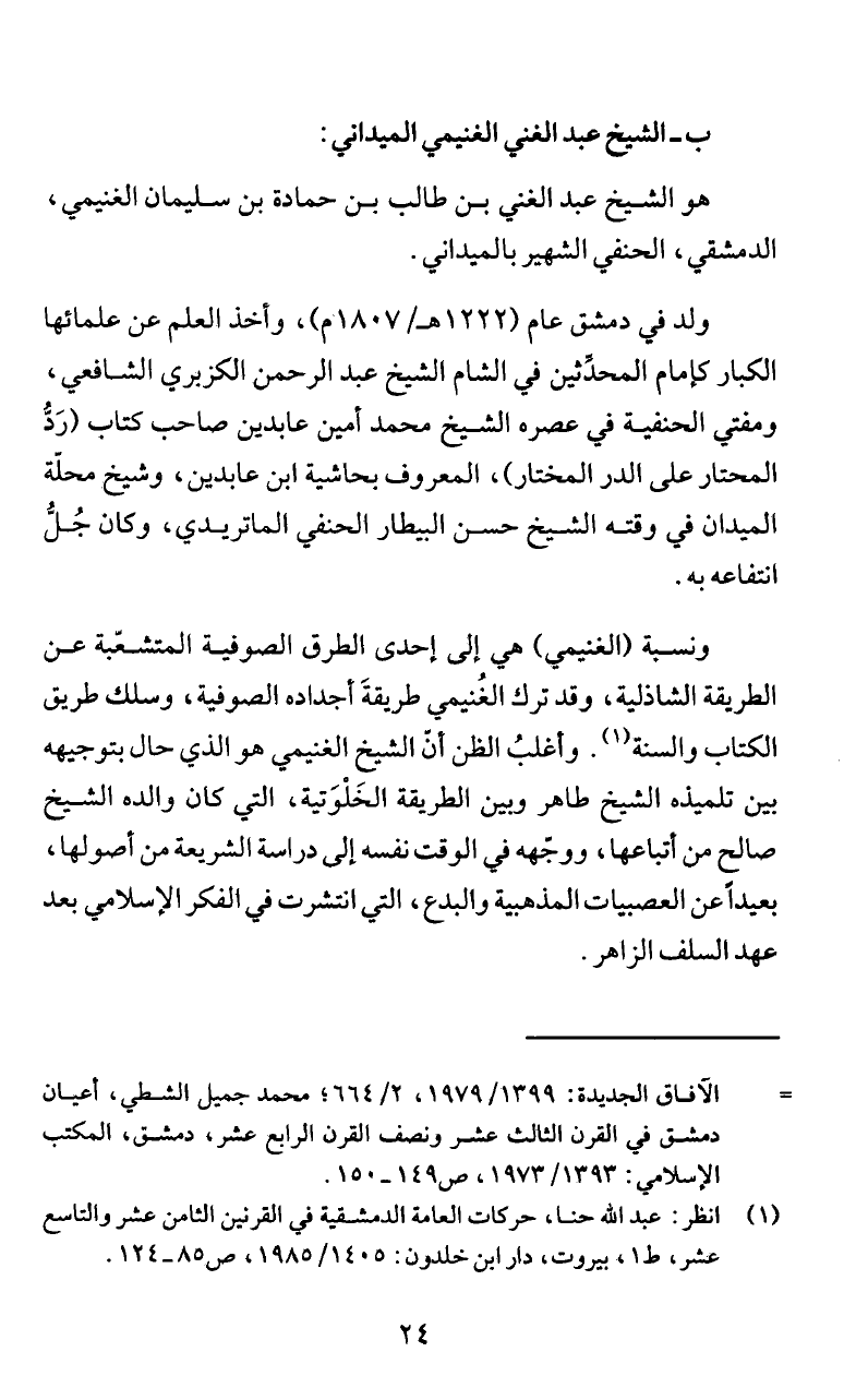 ب - الشيخ عبد الغني الغنيمي الميداني: