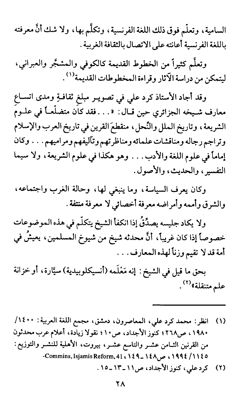السامية، وتعفم فوق ذلك اللغة الفرنسية، وتكقَم بها، ولا شك ان معرفته