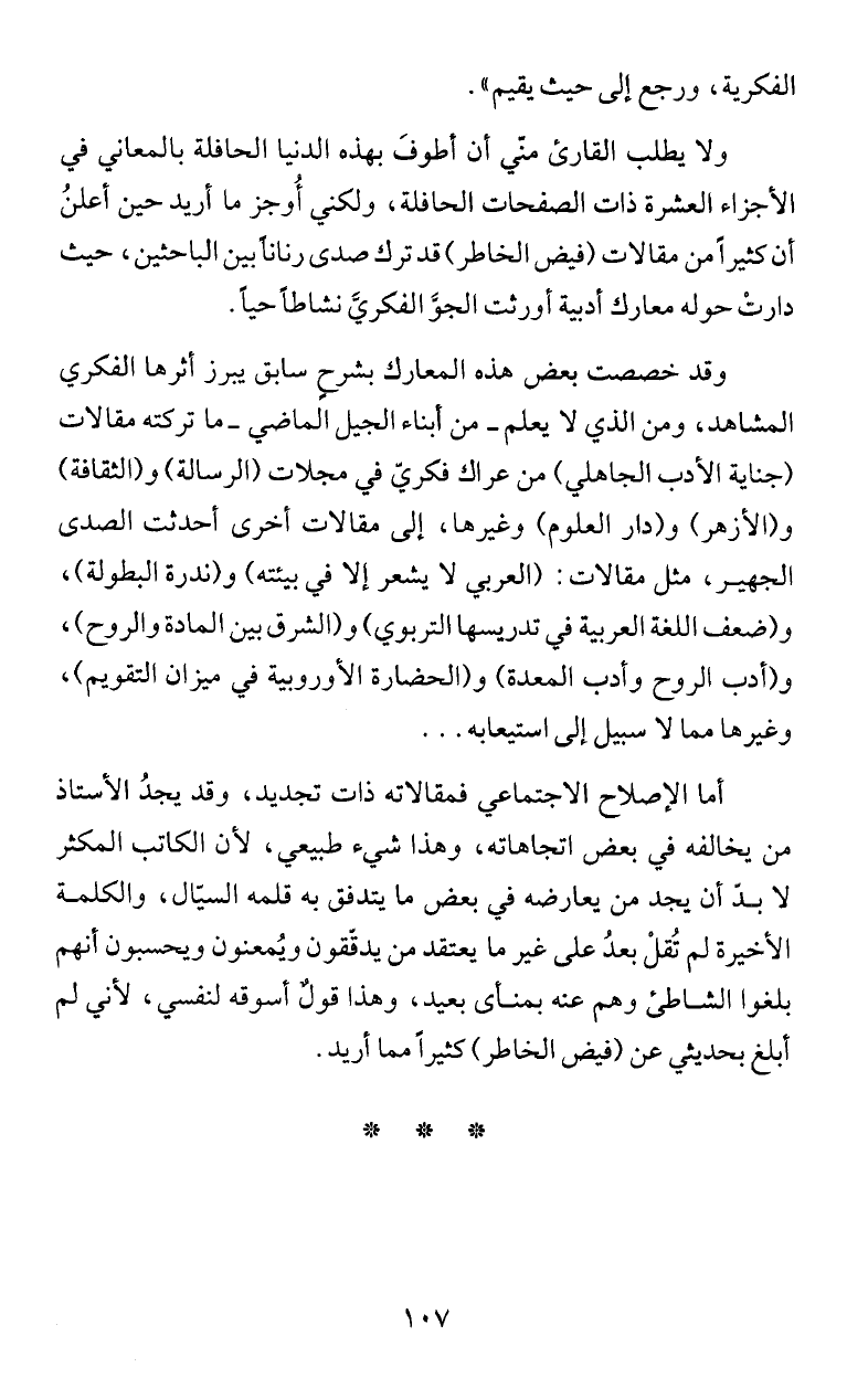 ابلغ بحديثي عن (فيض الخاطر) كثيراً مما أريد.