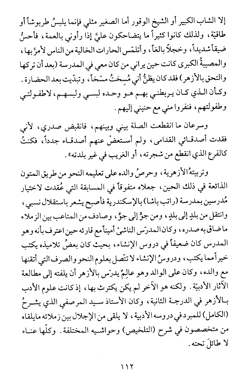 والتحق بالارهر) فقد كان يظن أني مُسِختُ مسْخاَ، وتبدّيت بعد الحضارة.