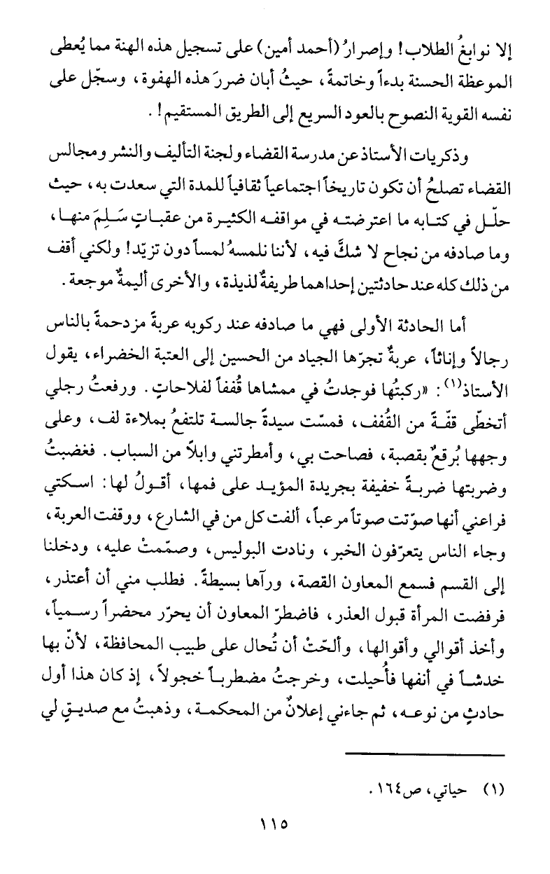 أما الحادثة الأولى فهي ما صادفه عند ركوبه عربةً مزدحمةً بالناس