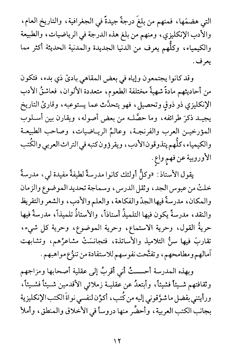 يقول الأستاذ: " وكل اولئك كانوا مدرسةً لطيفةً مفيدة لي، مدرسةً