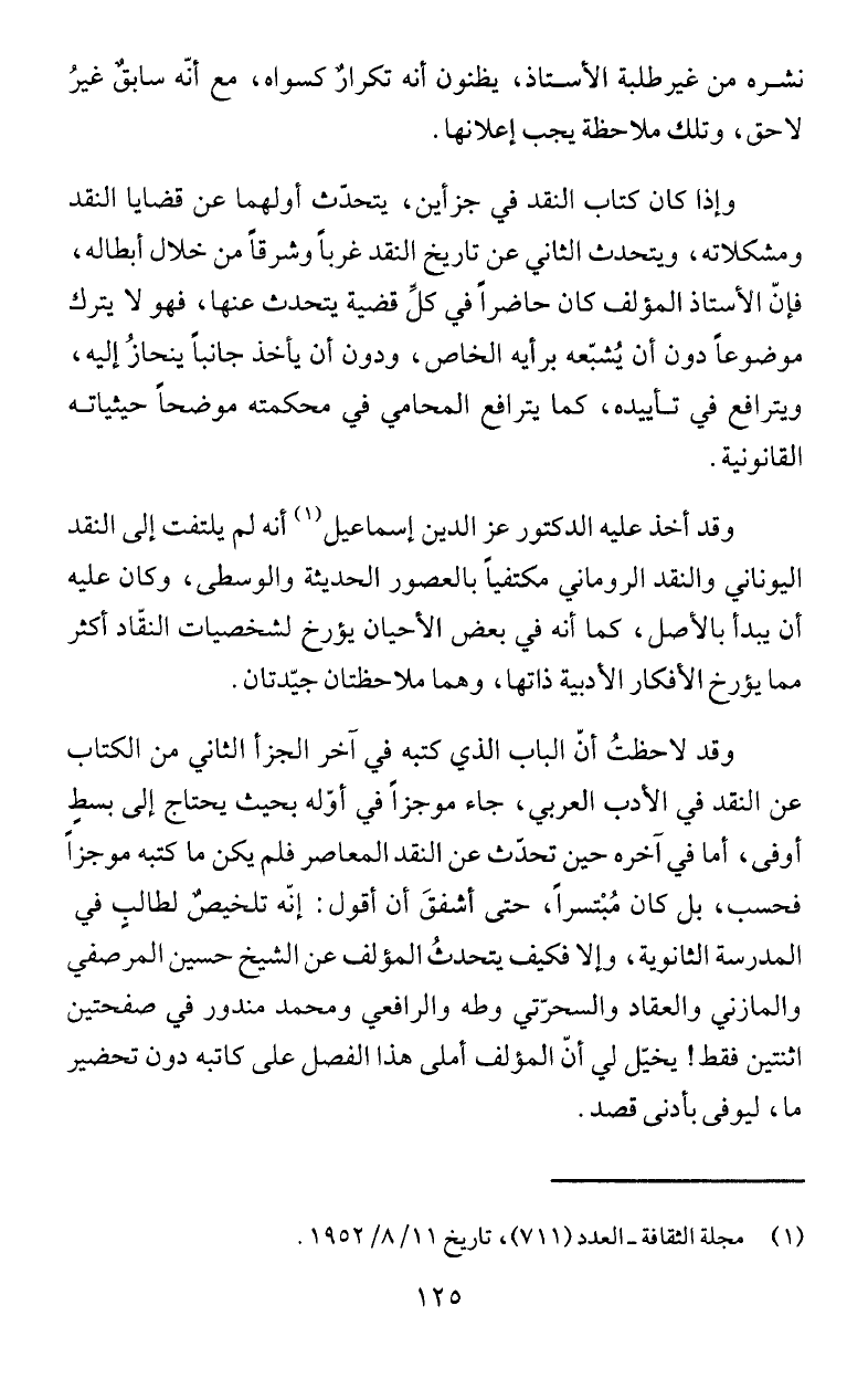 أوفى، اما في اَخره حين تحدّث عن النقد المعاصر فلم يكن ما كتبه موجزاً