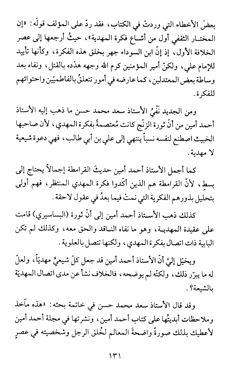 ويخيل إليَّ أنّ الأستاذ أحمد أمين قد جعل كل شيعيٍّ مهدياً، ولعلّ
