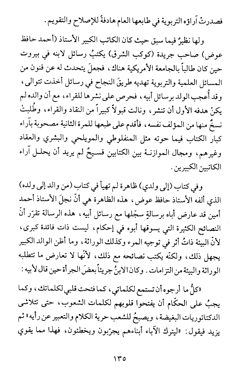 عوض) صاحب جريدة (كوكب الشرق) يكتبُ رسائل لابنه في بيروت