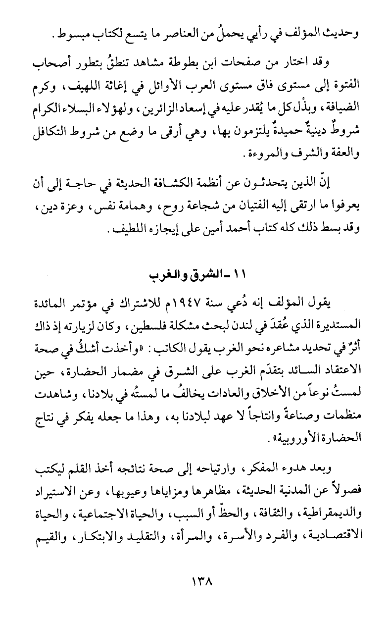 أثرٌ في تحديد مشاعره نحو الغرب يقول الكاتب: " وا خذت أشكُّ في صحة