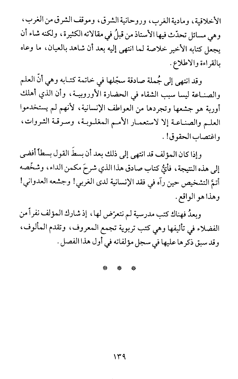 والصناعة ليسا سبب الشقاء في الحضارة الأوروبية، وأن الذي أهلك