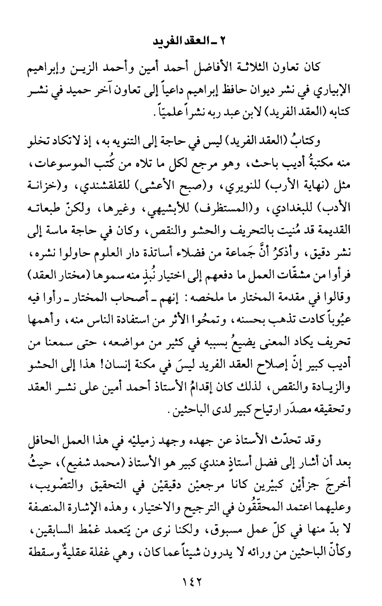 وكتابُ (العقد الفريد) ليس في حاجة إلى التنويه به، إذ لاتكاد تخلو
