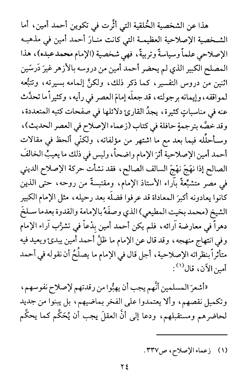 احمد امين الإصلاحية أثرَ الإمام واضحاً، وليس في ذلك ما يعيبُ الخالفَ