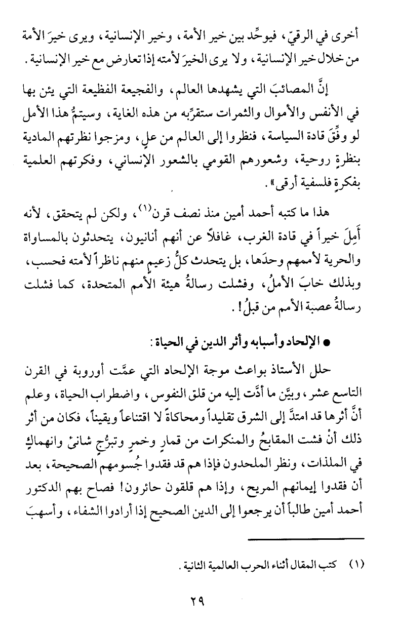 أخرى في الرقيّ، فيوحِّد بين خير الأمة، وخير الإنسانية، ويرى خيرَ الأمة