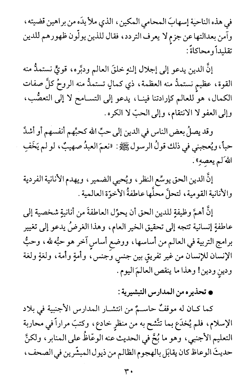 إنَّ أهئمَ وظيفةٍ للدين الحق أن يحوَل العاطفةَ من انانيةٍ شخصية إلى