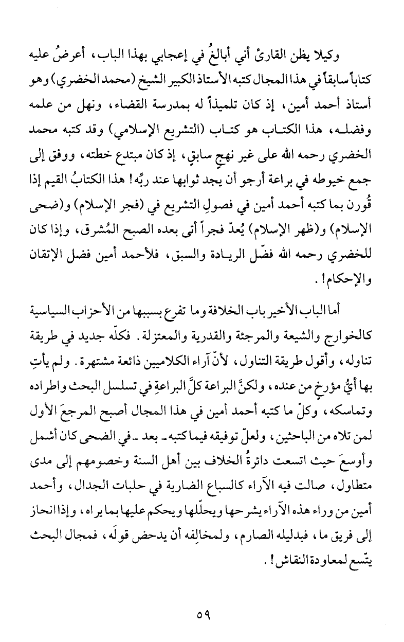 للخضري رحمه الله فضّل الريادة والسبق، فلأحمد أمين فضل الإتقان