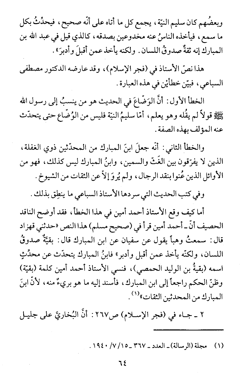 هذا نصّ الاستاذ في (فجر الإسلام)، وقد عارضه الدكتور مصطفى