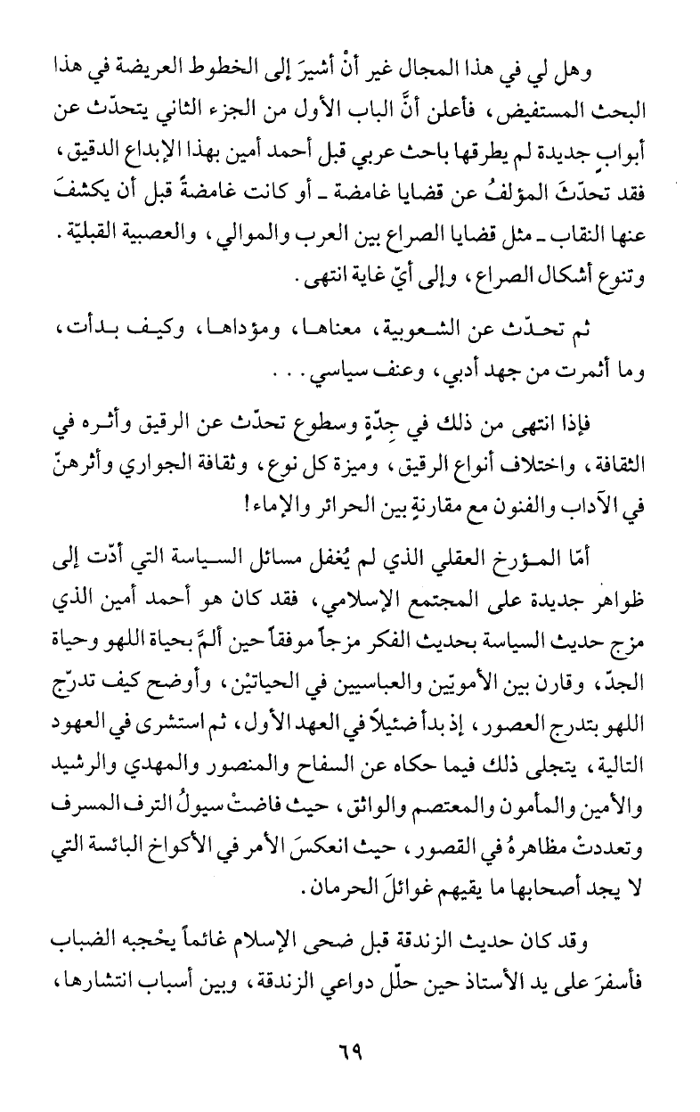أبوابٍ جديدة لم يطرقها باحث عربي قبل أحمد أمين بهذا الإبداع الدقيق،