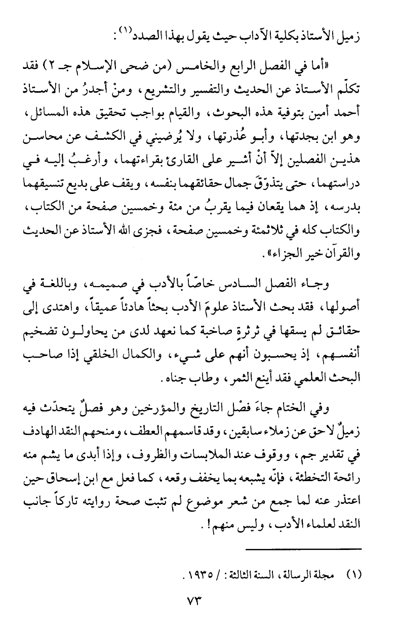 أحمد أمين بتوفية هذه البحوث، والقيام بواجب تحقيق هذه المسائل،