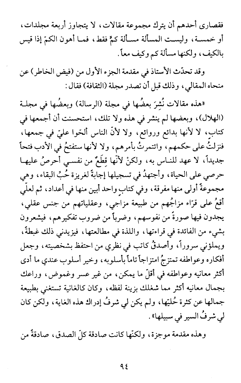 وقد تحدث الأستاذ في مقدمة الجزء الأول من (فيض الخاطر) عن