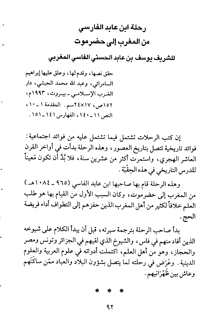 وهذه الرحلة قام بها صاحبها ابن عابد الفاسي (965 - 084 ا هـ)