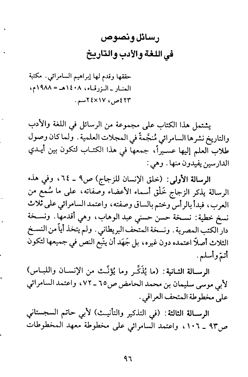 ص 93 - 106، واعتمد السامرائي على مخطوطة معهد المخطوطات
