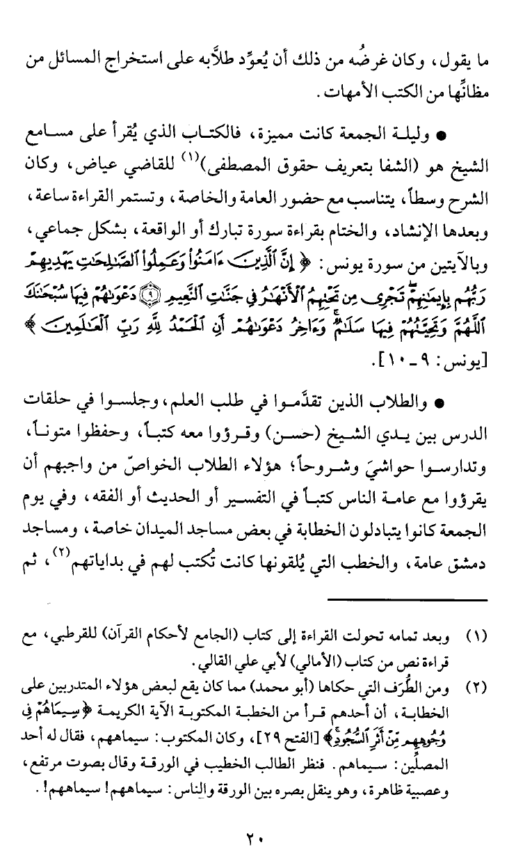 يقرؤوا مع عامة الناس كتبأ في التفسير أو الحديث أو الفقه، وفي يوم