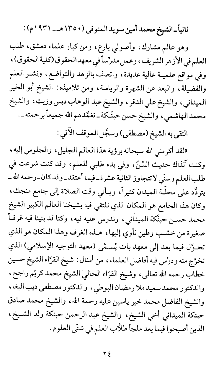 ثانياً - الشيخ محمد أمين سويد المتوفى (0 35 ا هـ- 931 1 م):