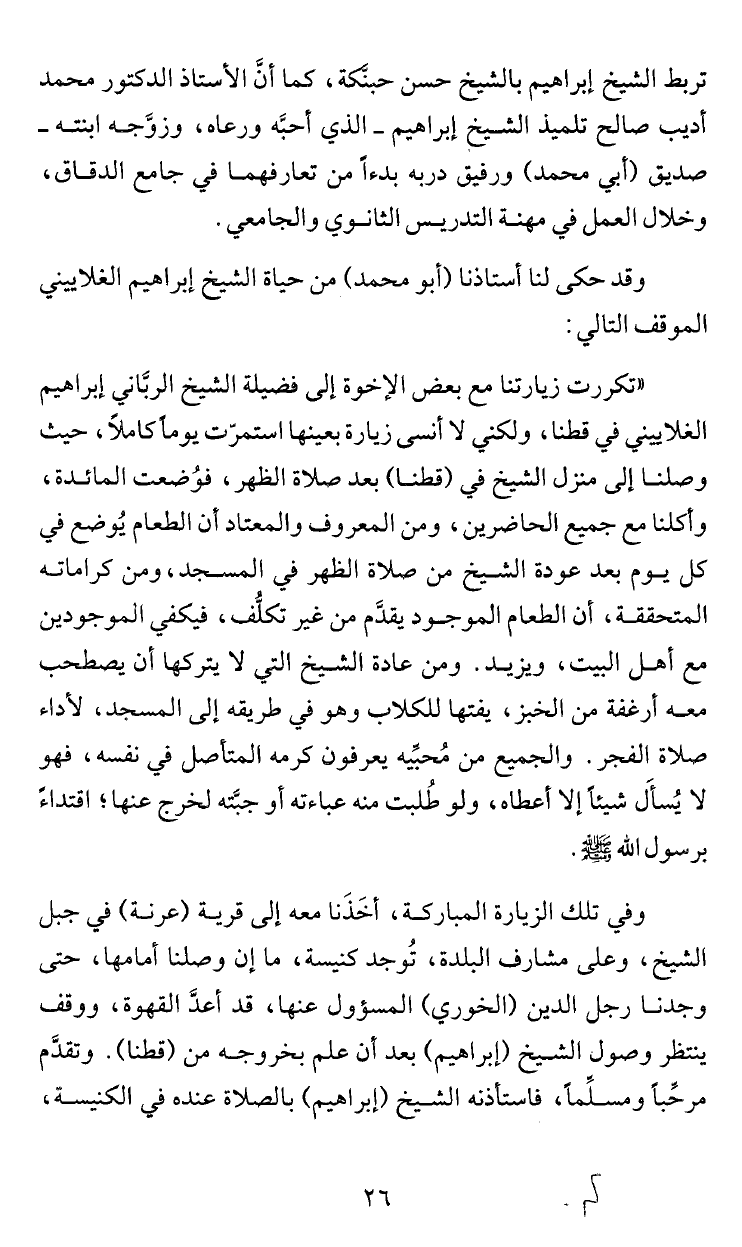 وقد حكى لنا أستاذنا (ابو محمد) من حياة الشيخ إبراهيم الغلاييني