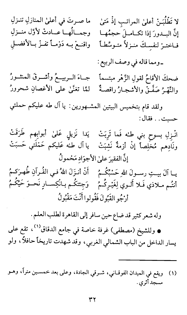يا آلَ بيتِ رسولَ اللهِ حَسْبُكُمُ أَنْ أنزَلَ اللهُ في القُراَنِ طُهرَكمُ