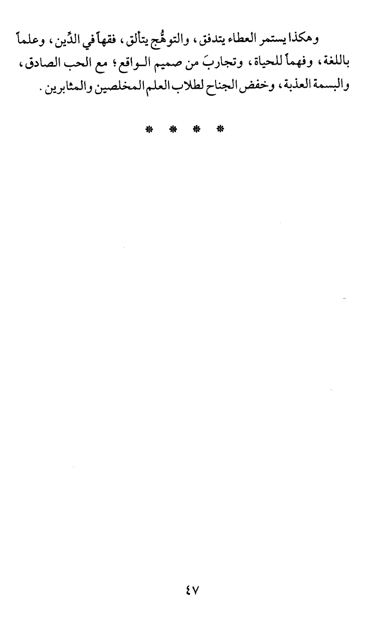 والبسمة العذبة، وخفض الجناح لطلاب العلم المخلصين والمثابرين.