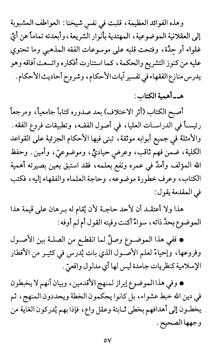 وفروعها، وإحياء لعلم الأصول الذي بات يُدرس في كثير من الأقطار