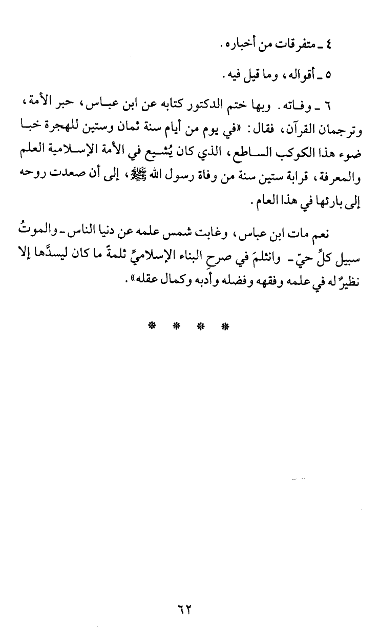 6 - وفاته. وبها ختم الدكتور كتابه عن ابن عباس، حبر الأمة،