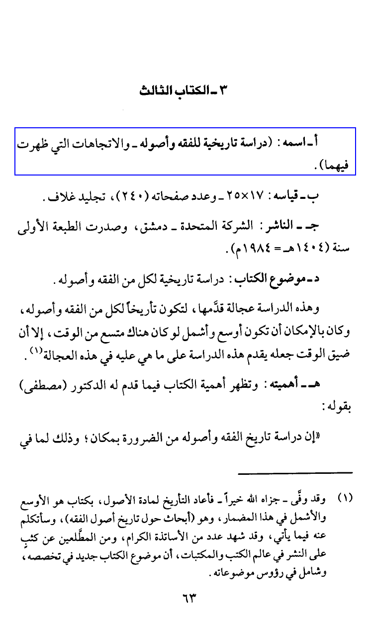 أ- اسمه: (دراسة تاريخية للفقه وأصوله - وا لاتجاهات التي ظهرت