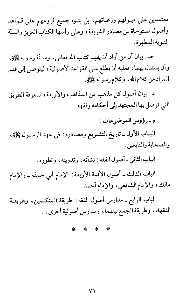 د - بيان أصول كل مذهب من المذاهب والأربعة، لمعرفة الطريق