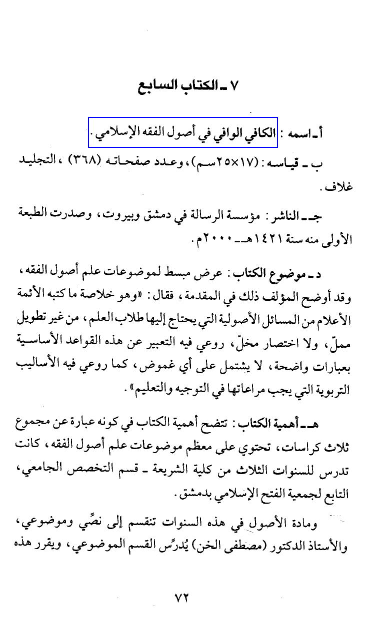 أ - اسمه: الكافي الوافي في اصول الفقه ا لإسلامي.