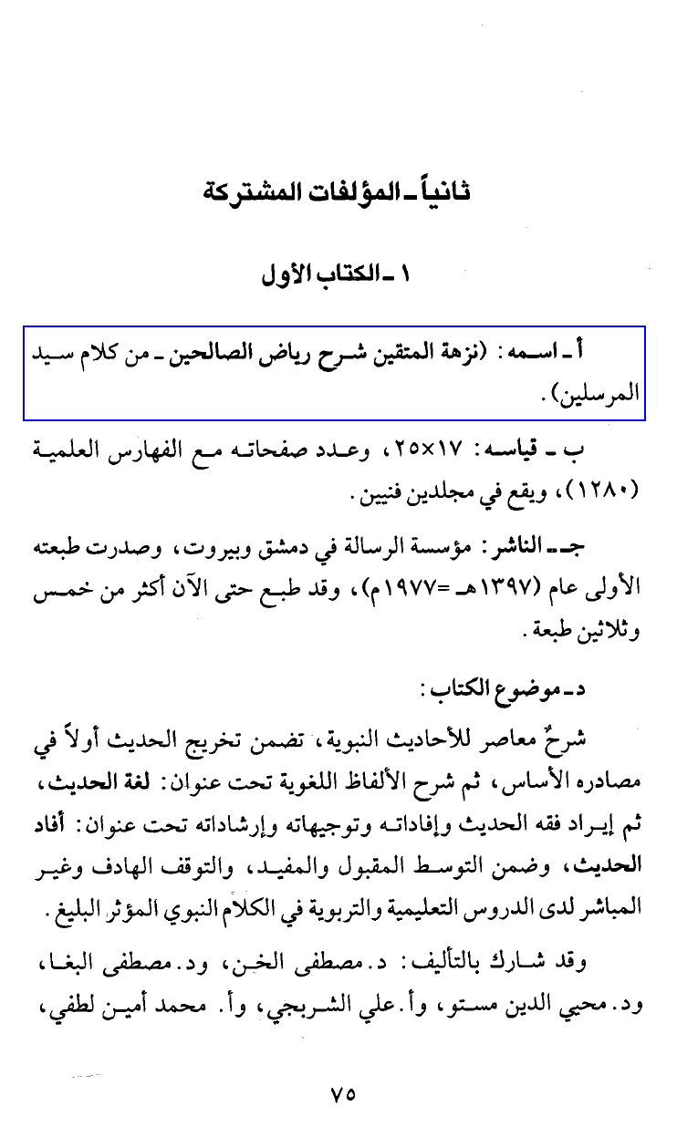 وقد شارك بالتأليف: د. مصطفى الخن، ود. مصطفى البغا،