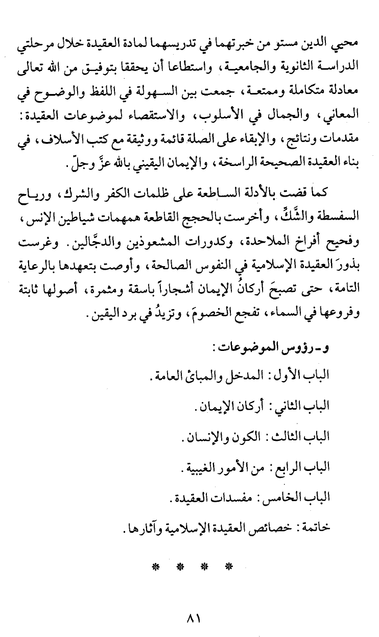 المعاني، والجمال في الأسلوب، والاستقصاء لموضوعات العقيدة: