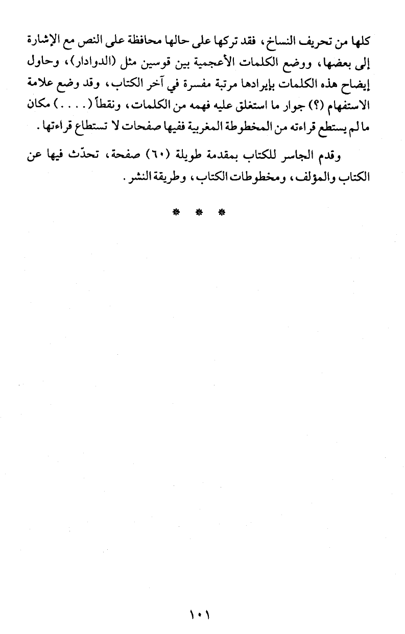 ما لم يستطع قراءته من المخطوطة المغربية ففيها صفحات لا تستطاع قراءتها.