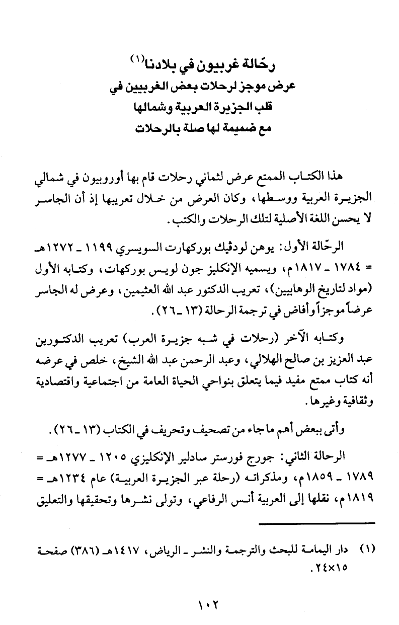 وكتابه الَاخر (رحلات في شبه جزيرة العرب) تعريب الدكتورين