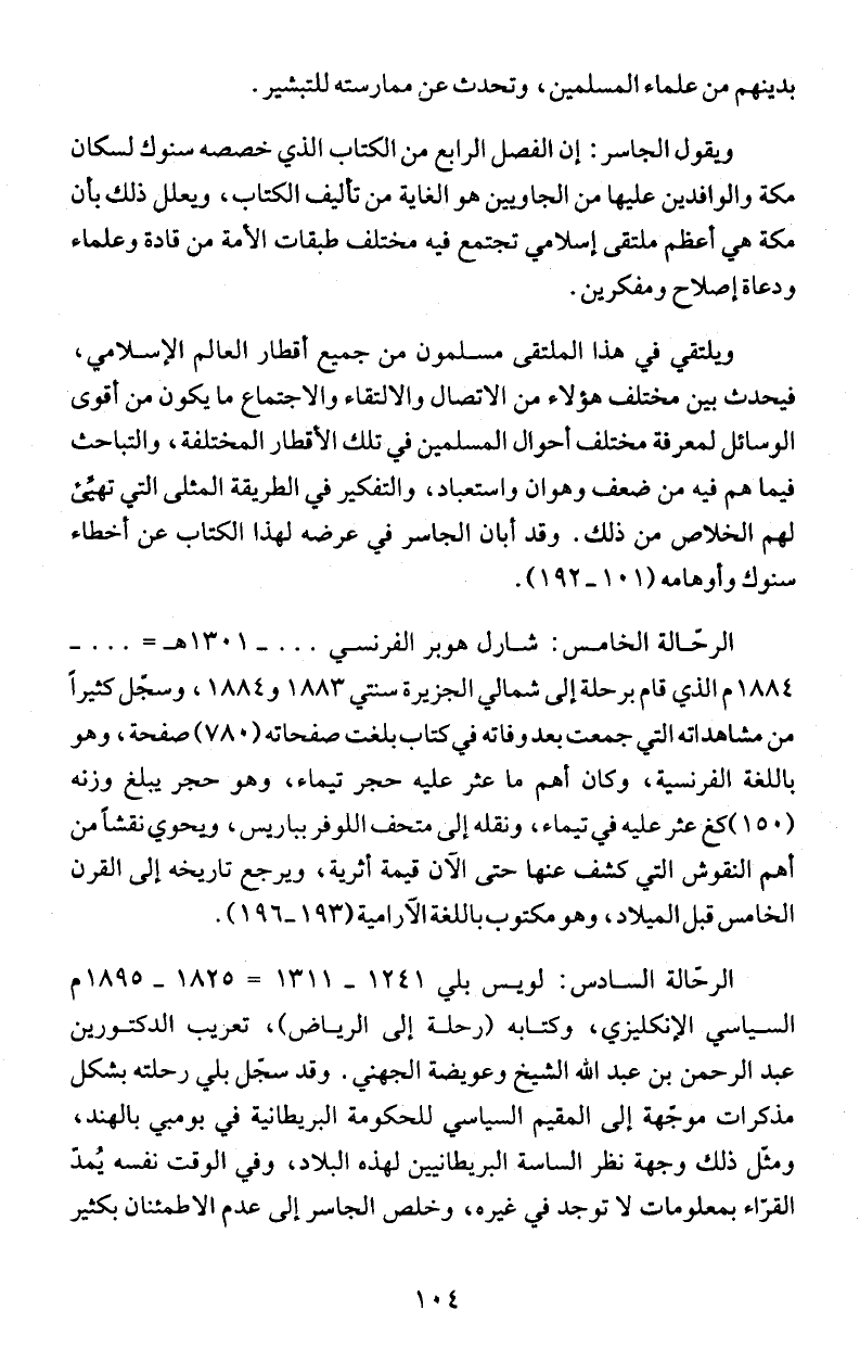 ويقول الجاسر: إن الفصل الرابع من الكتاب الذي خصصه سنوك لسكان