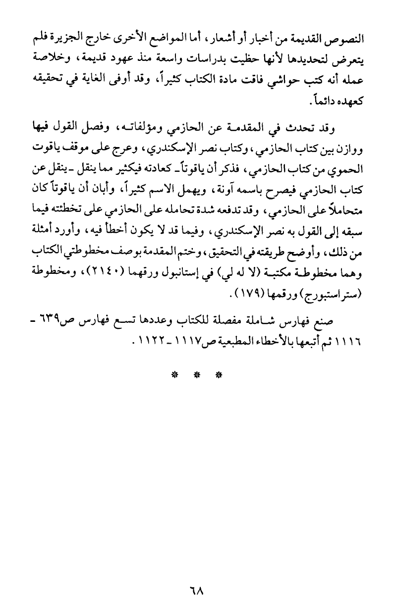 ووازن بين كتاب الحازمي، وكتاب نصر الإسكندري، وعرج على موقف يا قوت