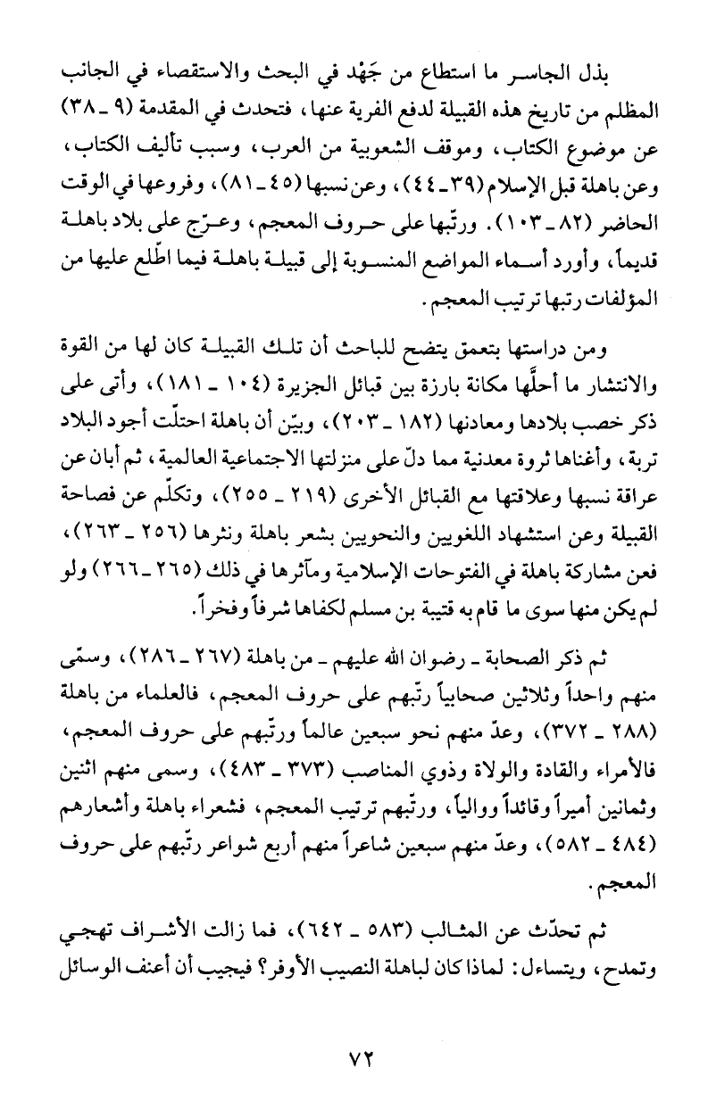 وعن باهلة قبل الإسلام (39 - 4 4)، وعن نسبها (5 4 - 1 8)، وفروعها في الوقت